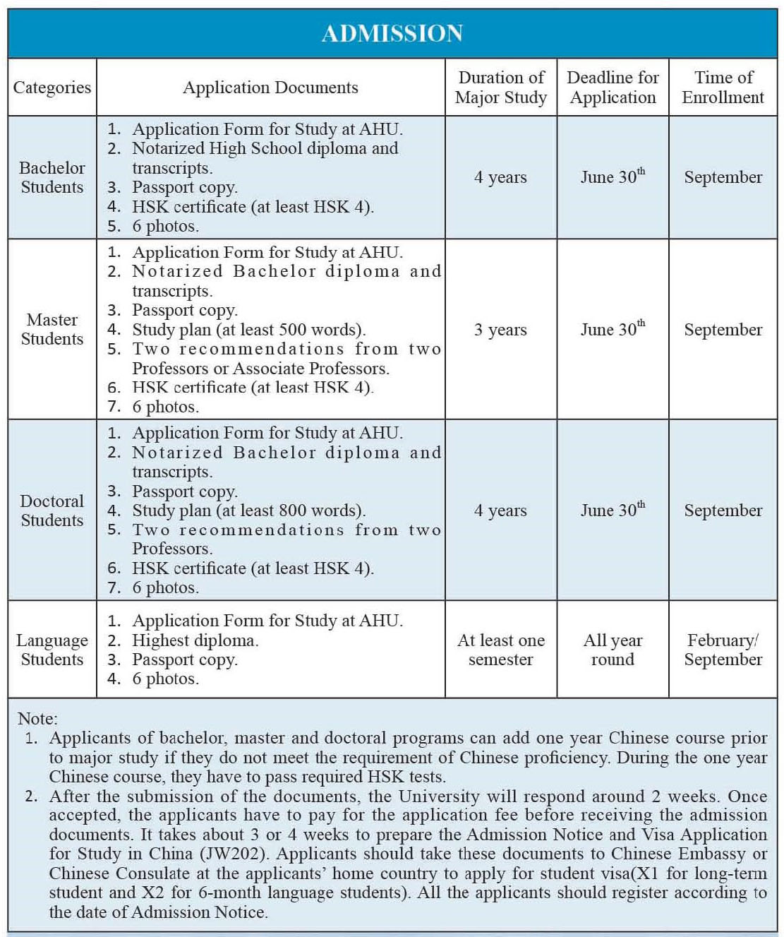 Application Materials for applying for Anhui University: