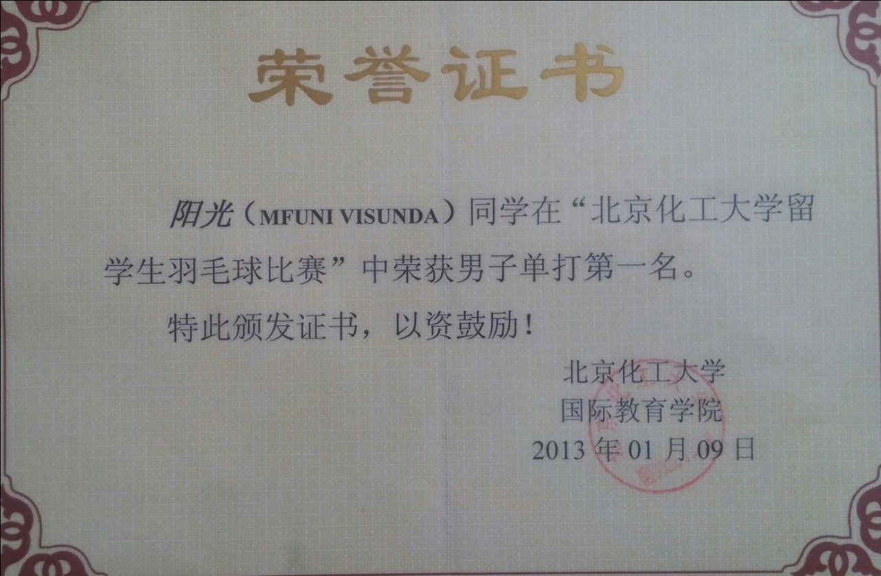 我跟SOPHIA是在2011年认识的,那是我第一次来中国, 第一个学校是北京交大,学了一年之后换到北京化工,在这里学习了计算机。老师给我奖学金,还参加了世界大学生运动会。在学校里获得好多奖。